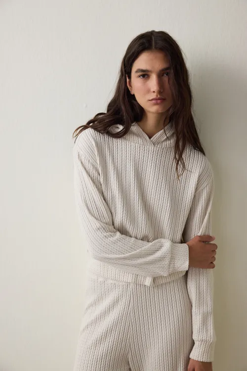 Cable Knit Hooded Sweatshirt PH4S44X825SK