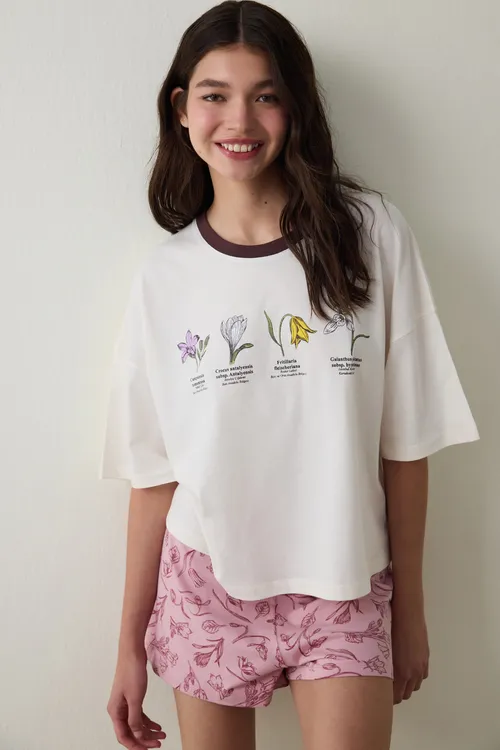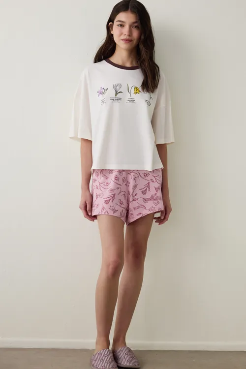 Bozkır Tulip Short-Sleeve Shorts Set PNKT188A25SK