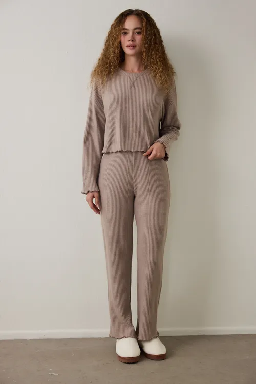 MOCHA WAFFLE LONG-SLEEVE PANTS SET PN1IBH8A25SK