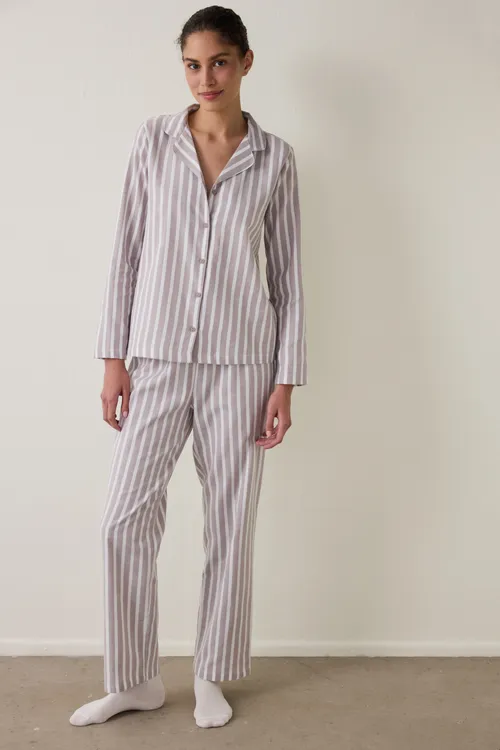 Cozy Beige Striped Long Sleeve Shirt & Pants Set PNSU7EXF25SK