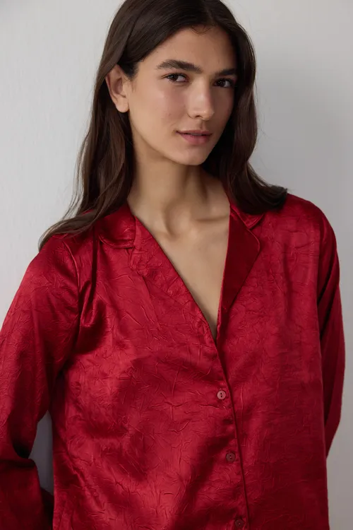 Red Solid Satin Shirt & Pant Set PN3AXA9H25SK